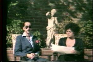 El dictador is a short film directed by David Lamelas and Hildegarde Duane which parodies an outlandish, arrogant, and tyrannical fictional dictator who plans to flee from the imaginary “banana republic” Santa Ana and seek refuge in the United States. In the satirical video news presenter Bárbara López (Duane) interviews the colonel and dictator Ricardo García Pérez (Lamelas) for the television news program Newsmakers. She questions and condemns his authoritarian policies, his attacks against the press and persecution of university students, as well as interrogating him in relation to the mysterious deaths of his five ex-wives. The dictator, a character inspired by various Latin American dictators such as Juan Perón (Argentina), Anastasio Somoza (Nicaragua) and Rafael Trujillo (Dominican Republic), boasts of his exploits and is not at all intimidated by the cameras. The video criticises the complicity of the mass media in the 1980s in the normalization of military dictatorships and coup d’états, the bending of the truth, and the manipulation of viewers, with the aim of maintaining social inequalities and preserving power structures.